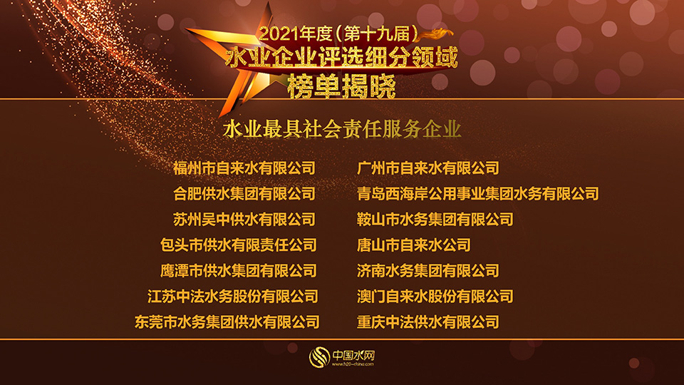 喜讯|市水务集团供水公司荣获“2021年度中国水业最具社会责任服务企业”称号
