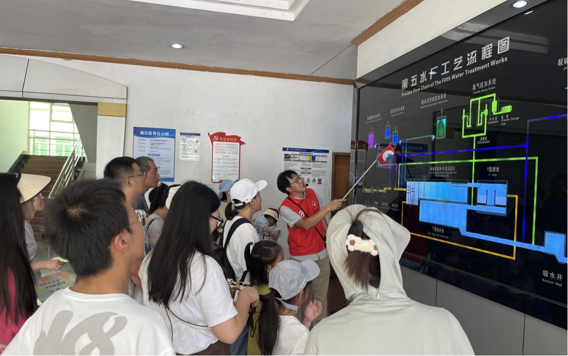 供水公司第五水厂开展以公益节水为主题的暑期开放日活动。活动邀请了陆逊梯卡华宏(东莞)眼镜有限公司45名亲子家庭成员,零距离体验“一滴水的旅程”,让家长和孩子们在参观实践中树立节水意识。
