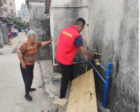 党员志愿者联合社区为孤寡老人上门检修用水设施
