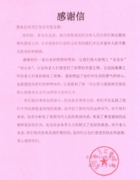 万江敬老院向供水公司万江分公司党支部致感谢信