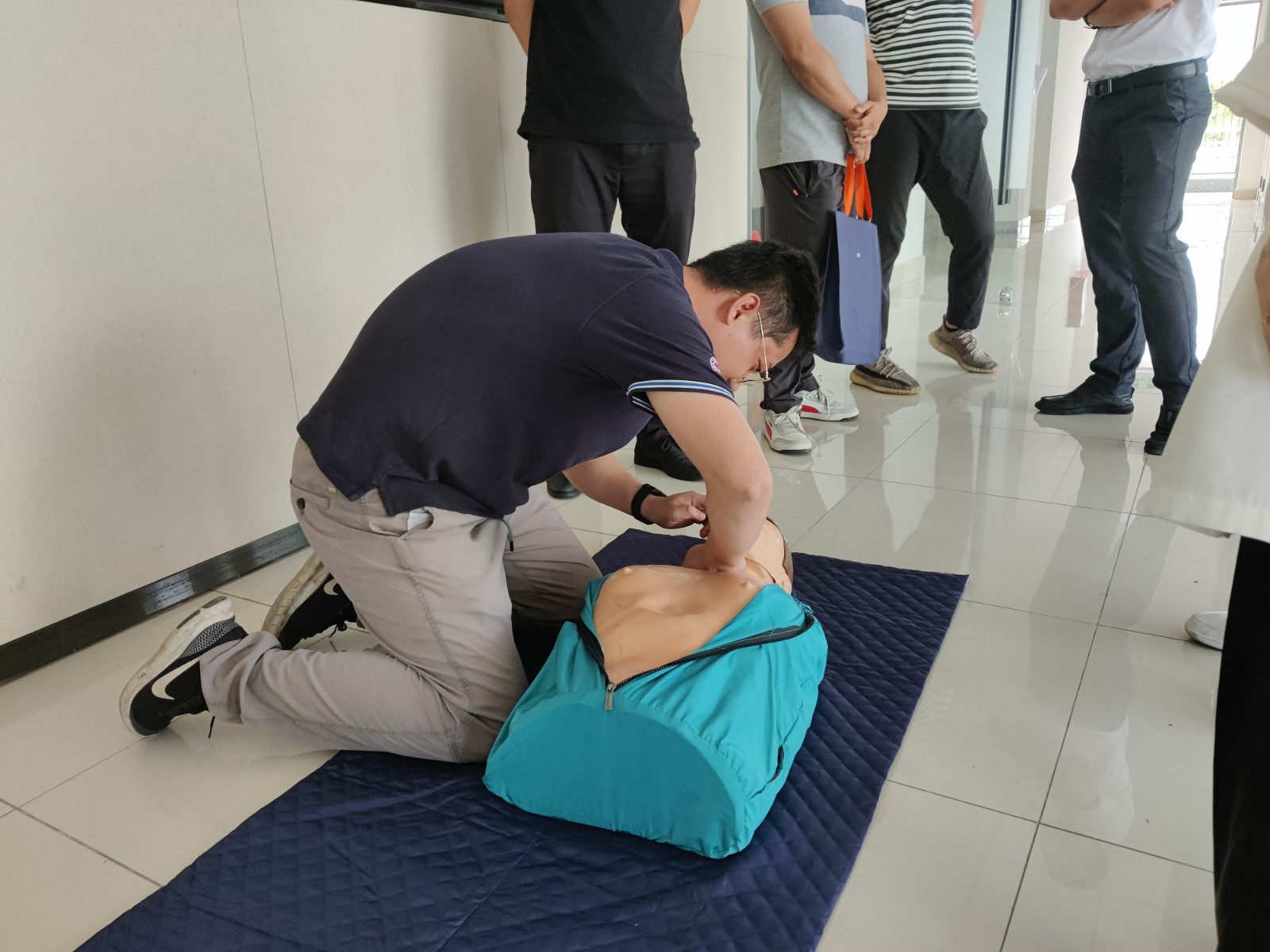 其后,现场员工进行了心肺复苏等实操体验,经工作人员的耐心指导,大家对心肺复苏的步骤和技术要领掌握得更牢固。