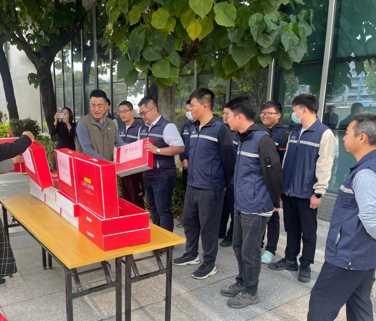 1月18日,集团党委委员、副总经理袁伟锋,集团党委委员、副总经理、工联会主席毛磊一行前往东江检测公司慰问一线采样人员,对他们的辛勤工作表达了深深的敬意和诚挚的关怀,并送上慰问物资。科技公司党总支委员、副总经理、工会主席邓丹清陪同前往。